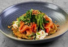 Тост с авокадо, лососем, лимонным соусом и терияки