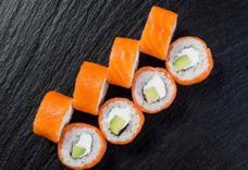 1325 г • Роллы Том ям, Ролл с семгой в устричном соусе, ролл Чука, Ролл авокадо с миндальным соусом, ролл Филадельфия