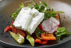 245 г • Томаты, свежий огурец, сладкий перец, земля из маслин, сыр фета,свежий редис и базилик,салатный микс, заправка бальзамическая