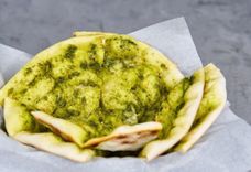 280 г • Яйцо куриное, молоко, соус фета, мортаделла с фисташкой, сыр выдержанный твердый, ростки подсолнуха, зеленое масло