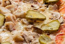 330 г • Ветчина, бекон, томаты, шампиньоны, огурцы маринованные, лук, сыр копченый, сыр моцарелла, соус-пицца, майонез, чеснок, гирос