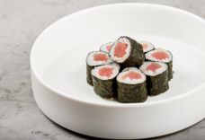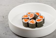250 г • рис, нори, креветки, лосось, такуан, огурец, сыр кремчиз, паста криль, лук порей